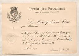 En particulier, menus, plans de table et cartons d'invitation de banquets organisés à l'occasion de l'Exposition universelle de 1900 et de la réception des délégués des municipalités italiennes (1904), des membres des parlements du Danemark, de la Suède et de la Norvège (1904), de la municipalité de Madrid (1905).